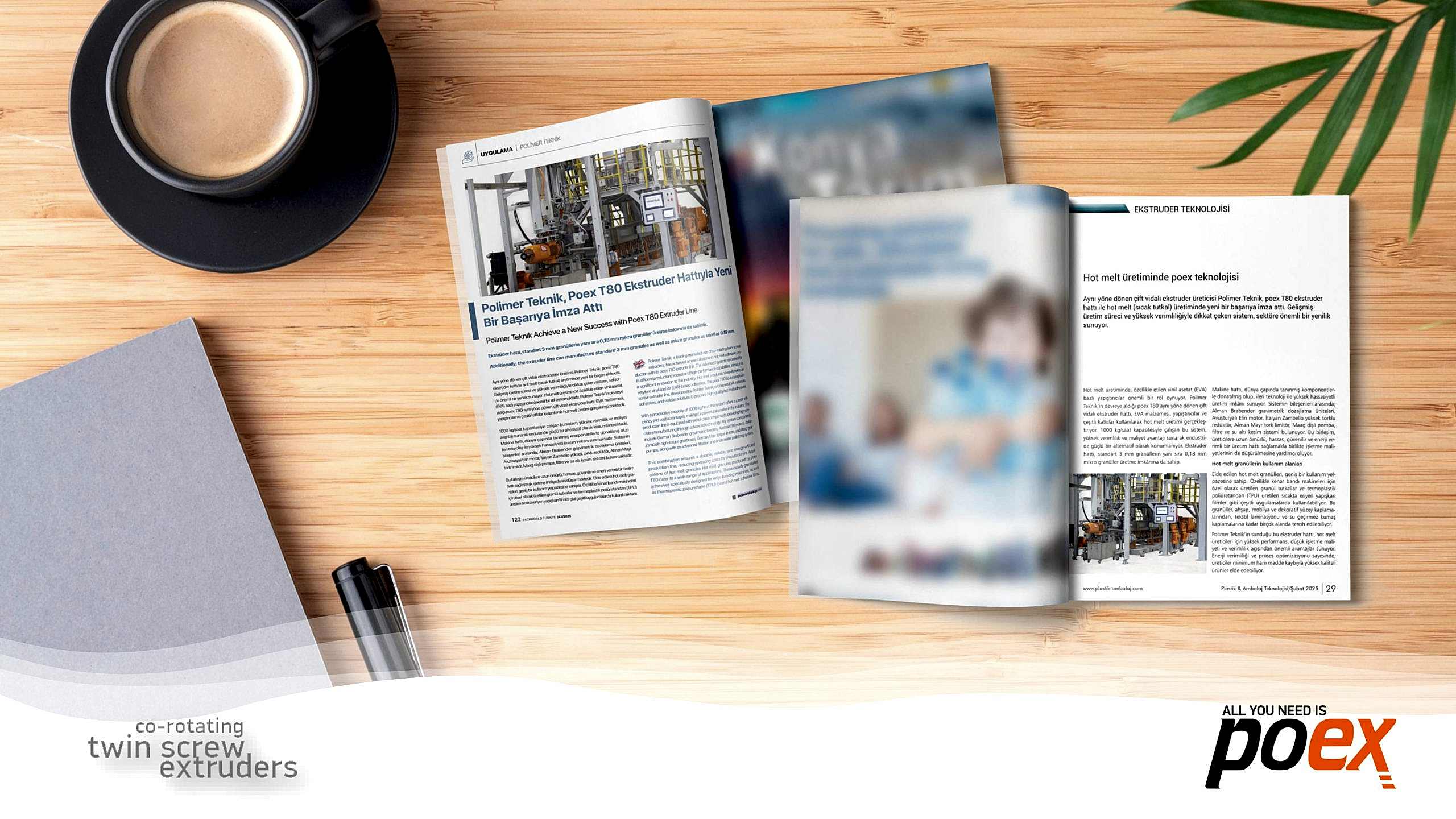 Aynı yöne dönen çift vidalı ekstrüderler üreticisi Polimer Teknik, poex T80 ekstrüder hattı ile hot melt (sıcak tutkal) üretiminde yeni bir başarıya imza attı. Gelişmiş üretim süreci ve yüksek verimliliğiyle dikkat çeken sistem, sektörde önemli bir yenilik sunuyor. Hot melt üretiminde, özellikle etilen vinil asetat (EVA) bazlı yapıştırıcılar önemli bir rol oynamaktadır. Polimer Teknik’in devreye aldığı poex T80 aynı yöne dönen çift vidalı ekstrüder hattı, EVA malzemesi, yapıştırıcılar ve çeşitli katkılar kullanılarak hot melt üretimi gerçekleştirmekte. 1000 kg/saat kapasitesiyle çalışan bu sistem, yüksek verimlilik ve maliyet avantajı sunarak endüstride güçlü bir alternatif olarak konumlanmakta. Ekstrüder hattı, standart 3 mm granüllerin...