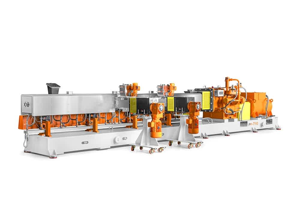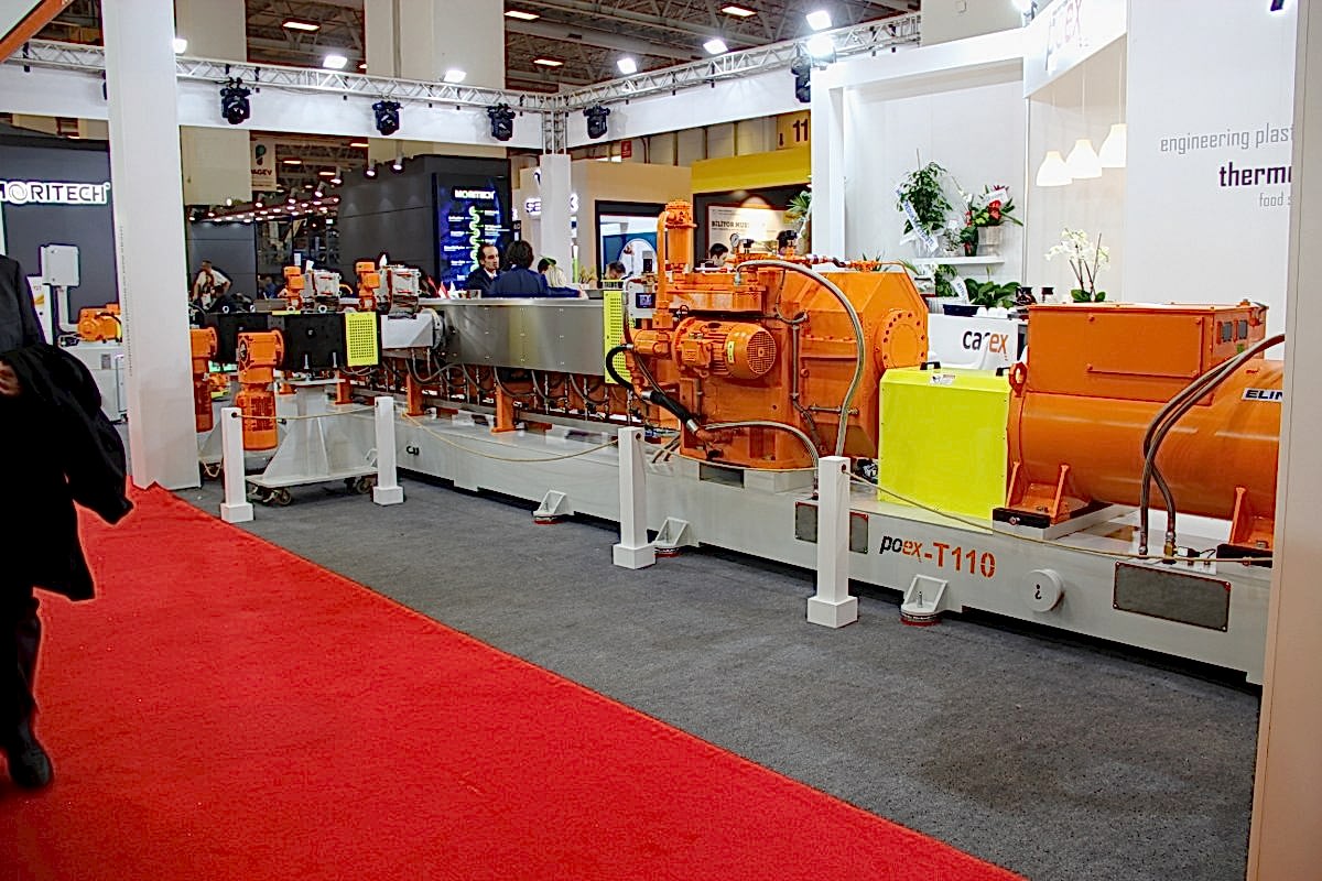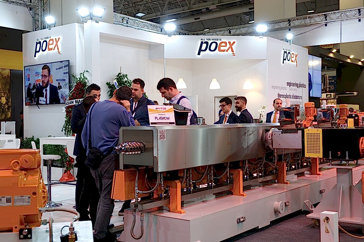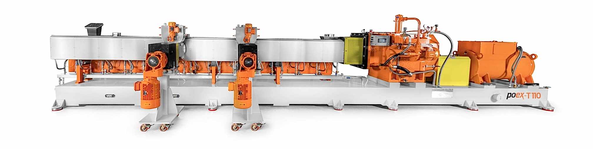 Polimer Teknik, kompaund sektörünün yüksek kapasite ihtiyaçlarına cevap oluşturacak ekstrüder hattını piyasaya sundu. İlk olarak Plast Eurasia İstanbul 2022 Fuarı’nda sergilenen poex T110 aynı yöne dönen çift vidalı ekstrüder, 108 mm vida çapına sahip, 570 kW su soğutmalı yüksek verimli Elin motor, Mayr tork limitörü, yüksek çıkış torkuna sahip Zambello redüktörüne sahip. Ekstrüder, yüzde 83’e varan mineral dolgu imkanı ve saatlik 2500 kilogramlık üretim kapasitesi ile yükseklik dolgulu kompaund pazarına hitap ediyor. poex T110 hattına akuple ettiği yenilikçi bakım monitörü, tam otomatik yağlama sistemi ve kullanıcı dostu endüstriyel yazılımı ile kullanıcılarına hem kestirimci bakım hem de minimum üretim kaybı sunuyor.