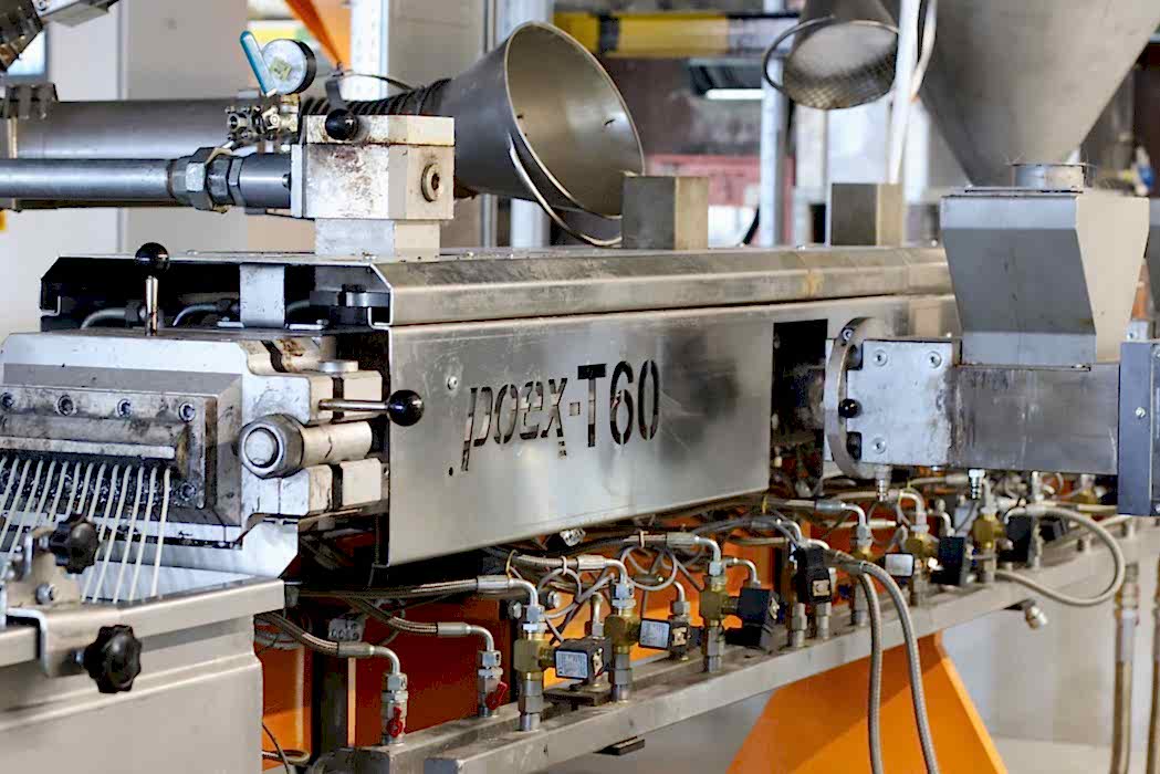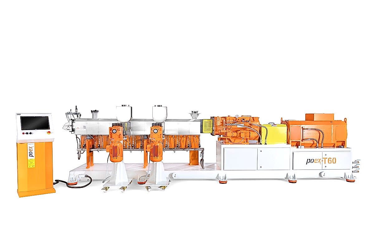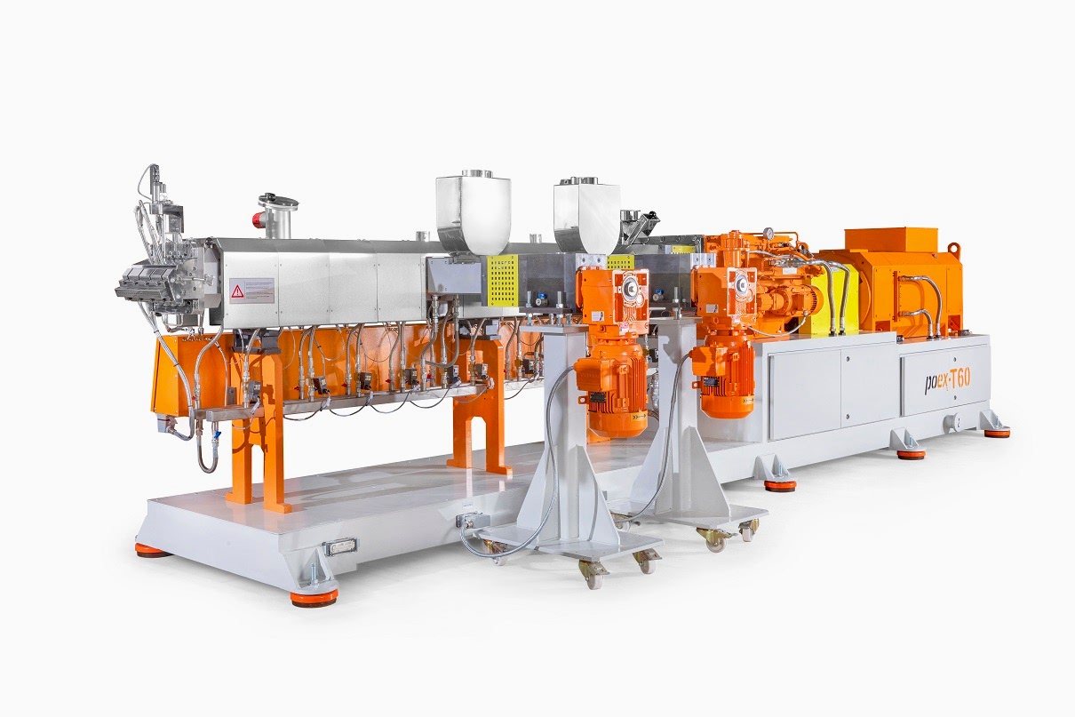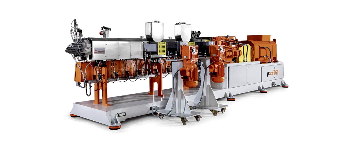 Polimer Teknik, 16 Nm/cm3 yüksek tork yoğunluğuna sahip, 58 mm vida çapına ve maksimum 900 rpm devire sahip yeni bir cam elyaf takviyeli kompaund üretim hattı poex T60HT aynı yöne dönen çift vidalı ekstrüder hattını başarıyla test etti ve piyasaya sürdü.